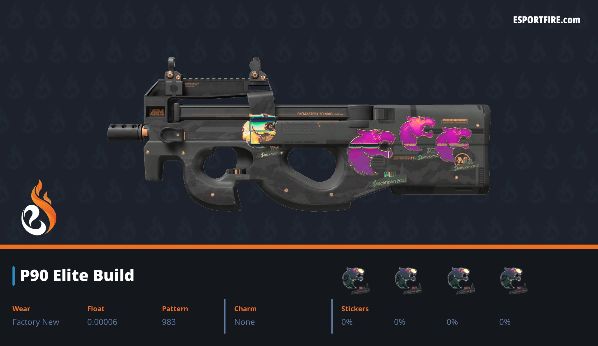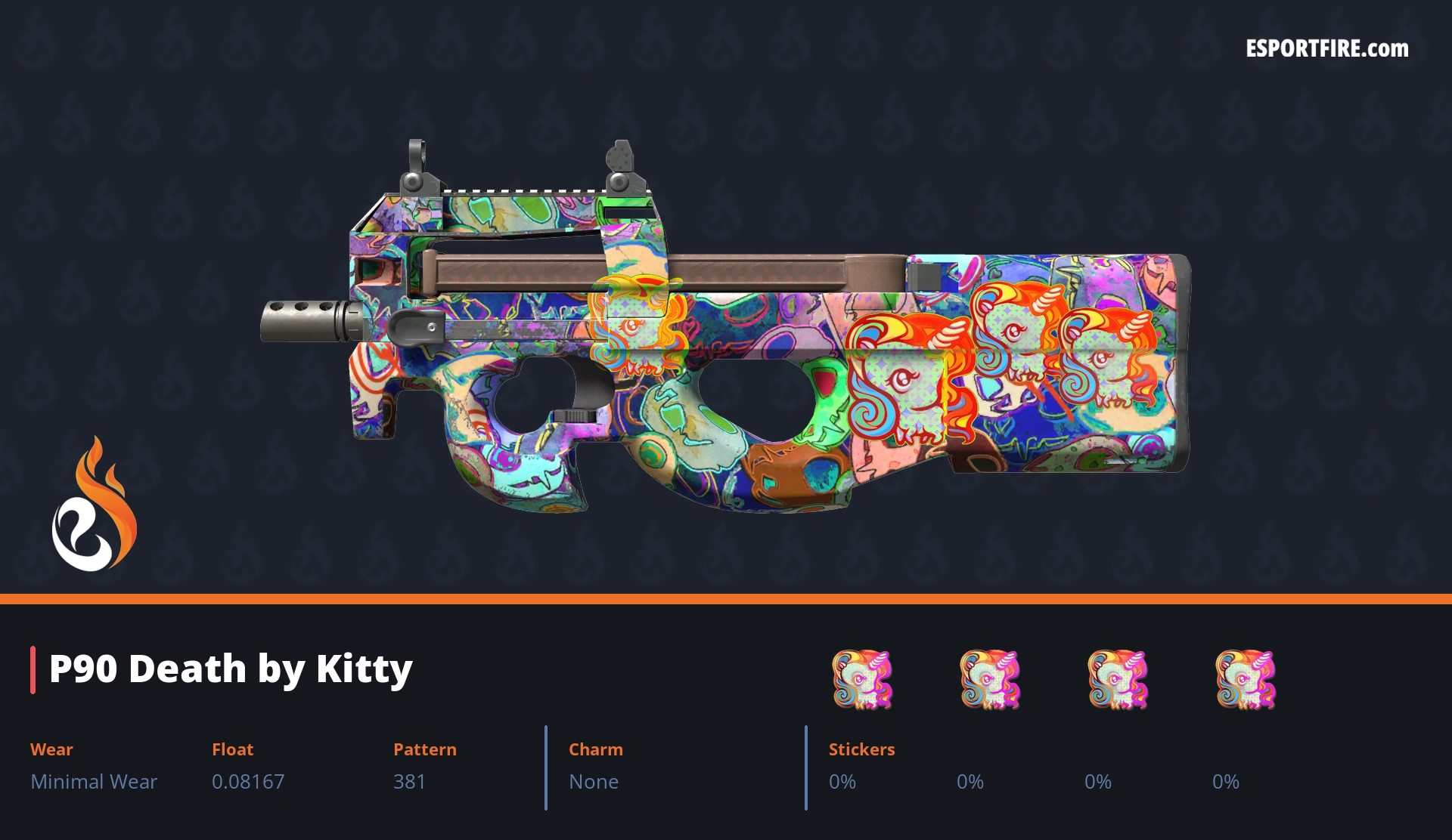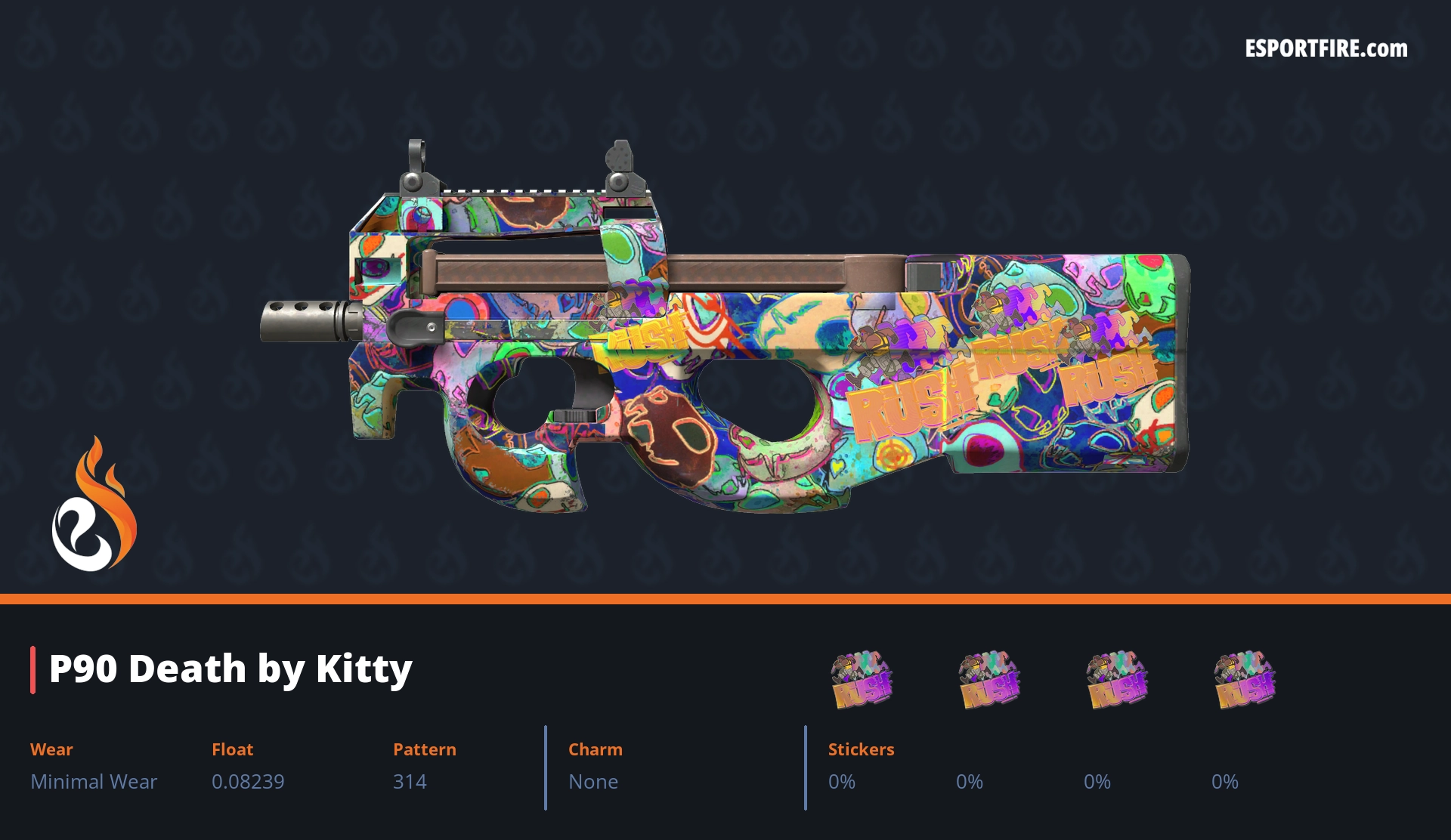 Welcome to our hub of P90 crafts, featuring the best P90 sticker crafts in CS2 & CS:GO. This high-capacity SMG is notorious for its spray potential, but it also boasts one of the largest surfaces for stickers—perfect for making a statement. Browse through popular community designs, or share your own creative combos with us on X. Whether you call it a “noob cannon” or a clutch machine, let’s deck it out with style!