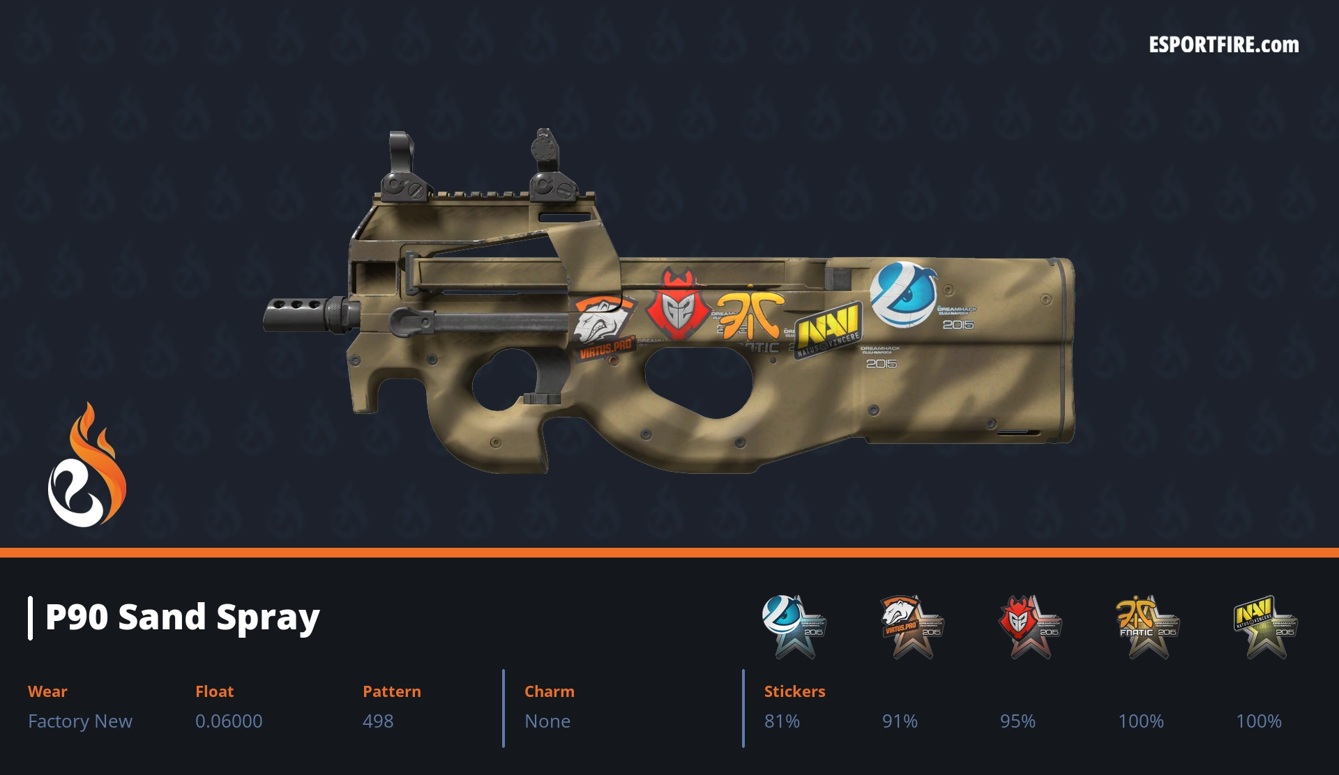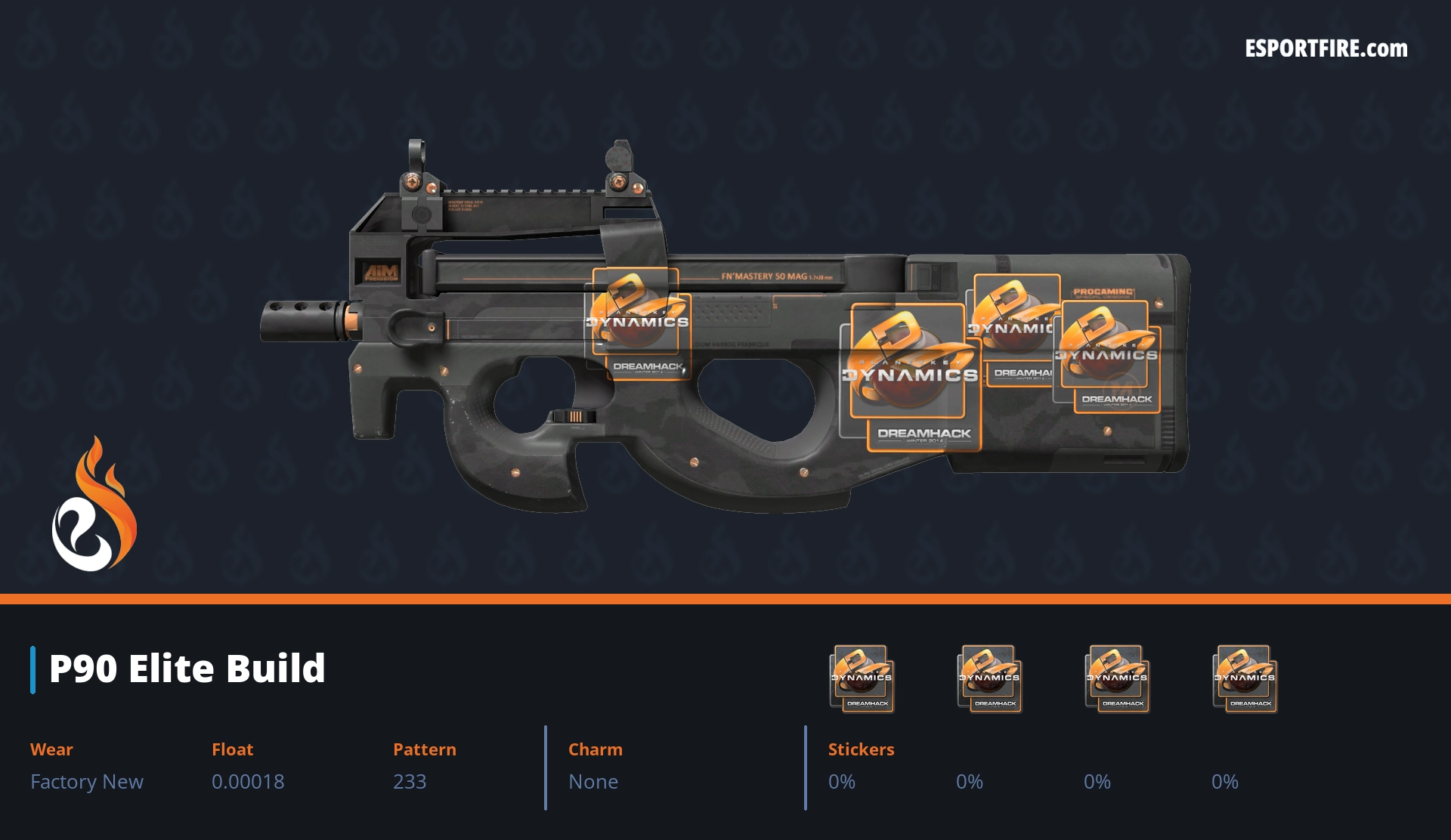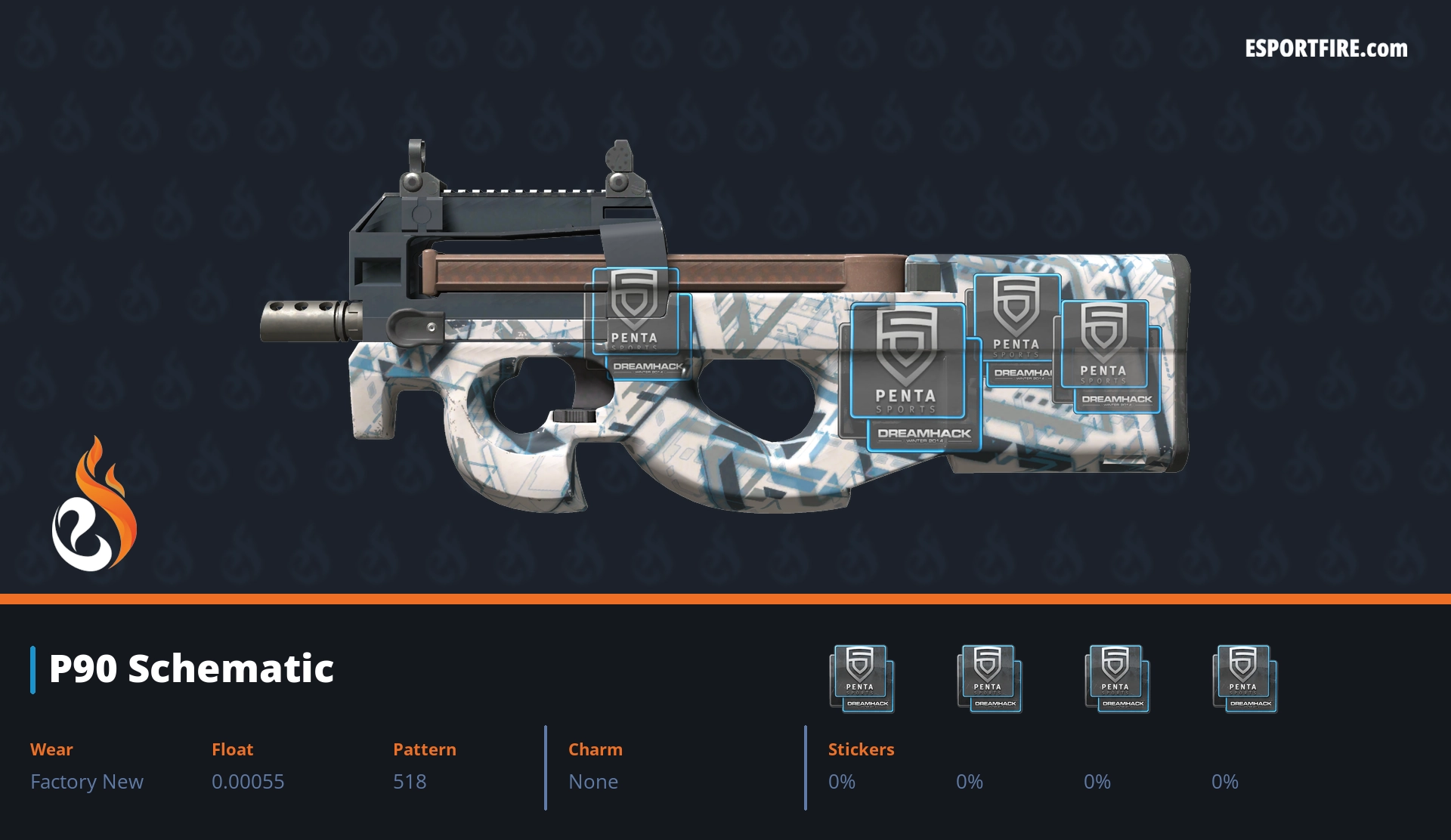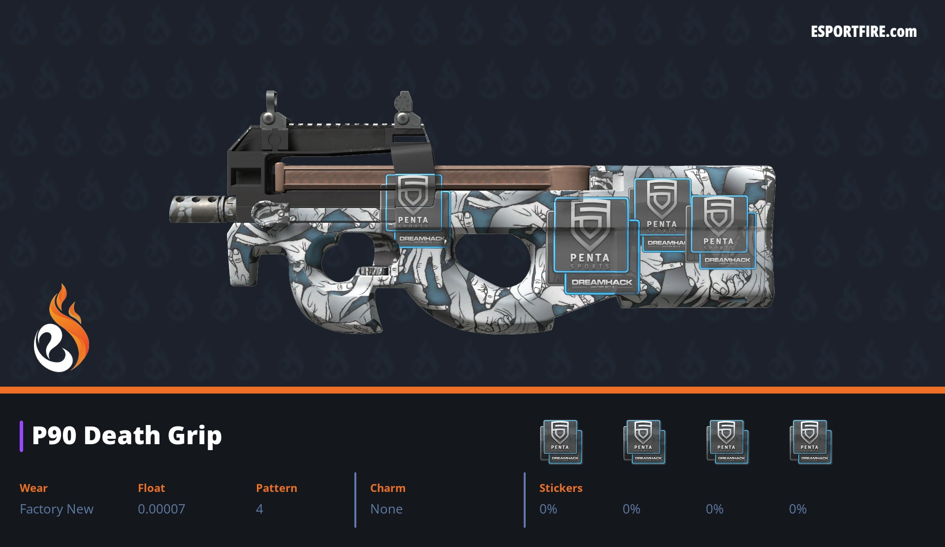 Welcome to our hub of P90 crafts, featuring the best P90 sticker crafts in CS2 & CS:GO. This high-capacity SMG is notorious for its spray potential, but it also boasts one of the largest surfaces for stickers—perfect for making a statement. Browse through popular community designs, or share your own creative combos with us on X. Whether you call it a “noob cannon” or a clutch machine, let’s deck it out with style!